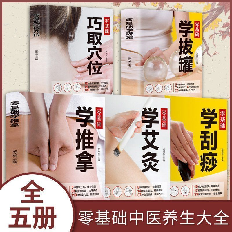 中医养身书全5册 零基础学推拿+学拔罐+学艾灸+学刮痧+巧取穴位